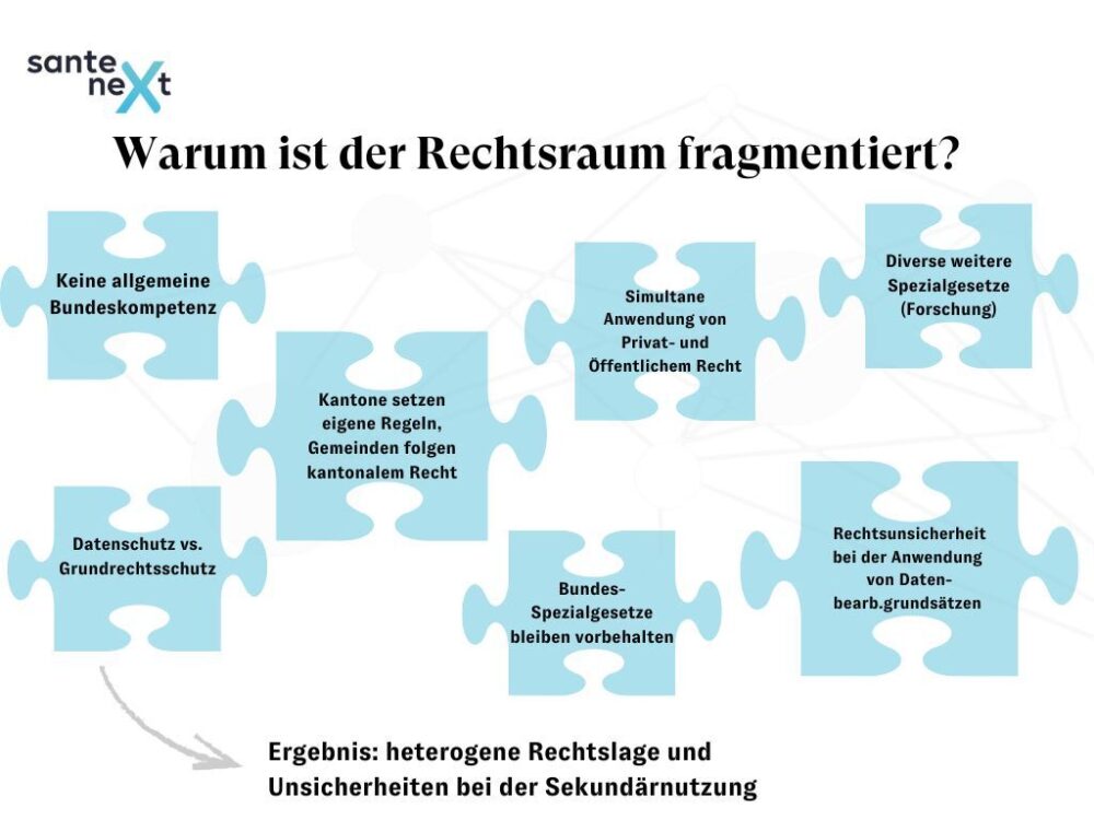 - Rechtslage in der Schweiz: Das DSG wirkt als Rahmen, doch Spezialnormen und kantonale Zuständigkeiten führen zu Fragmentierung und Unsicherheit – etwa bei Zweckbindung, Anonymisierung und Verhältnismässigkeit.